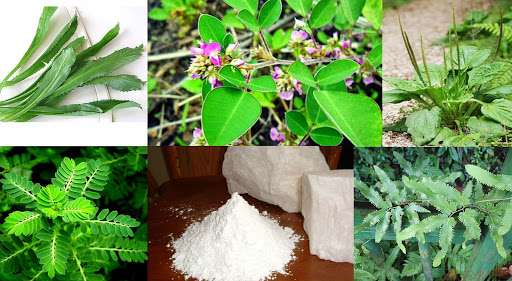 Chuẩn bị các vị thuốc: Mùi tàu, kim tiền thảo, bạch vĩ, râu mã đề, cây chó đẻ, bột hoạt thạch và hải kim sa.