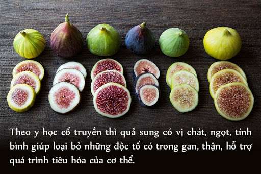 Còn theo y học cổ truyền thì quả sung có vị chát, ngọt, tính bình giúp loại bỏ những độc tố có trong gan, thận, hỗ trợ quá trình tiêu hóa của cơ thể.