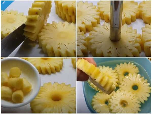 - Hấp cách thủy hoặc ninh quả dứa trong khoảng 3 giờ, gọt sạch vỏ.