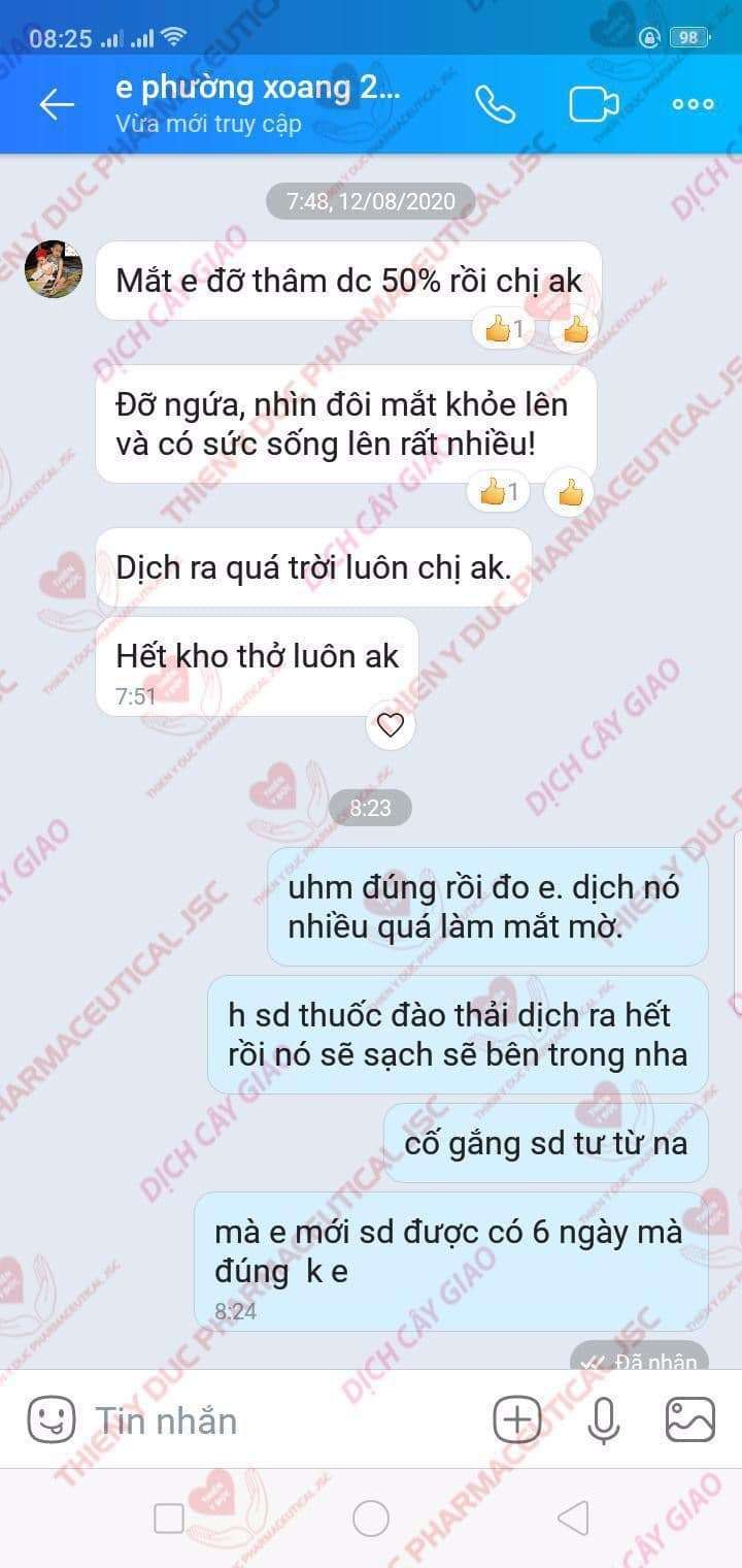 17/8/2020 khi gần hết 1 liệu trình, tình trạng bệnh a đã giảm hơn 80% chỉ còn ít dịch và hơi nghẹt mũi, anh chủ động gọi trực tiếp đến nhà thuốc để lấy thêm 1 liệu trình sử dụng trong thời gian công tác sắp tới.