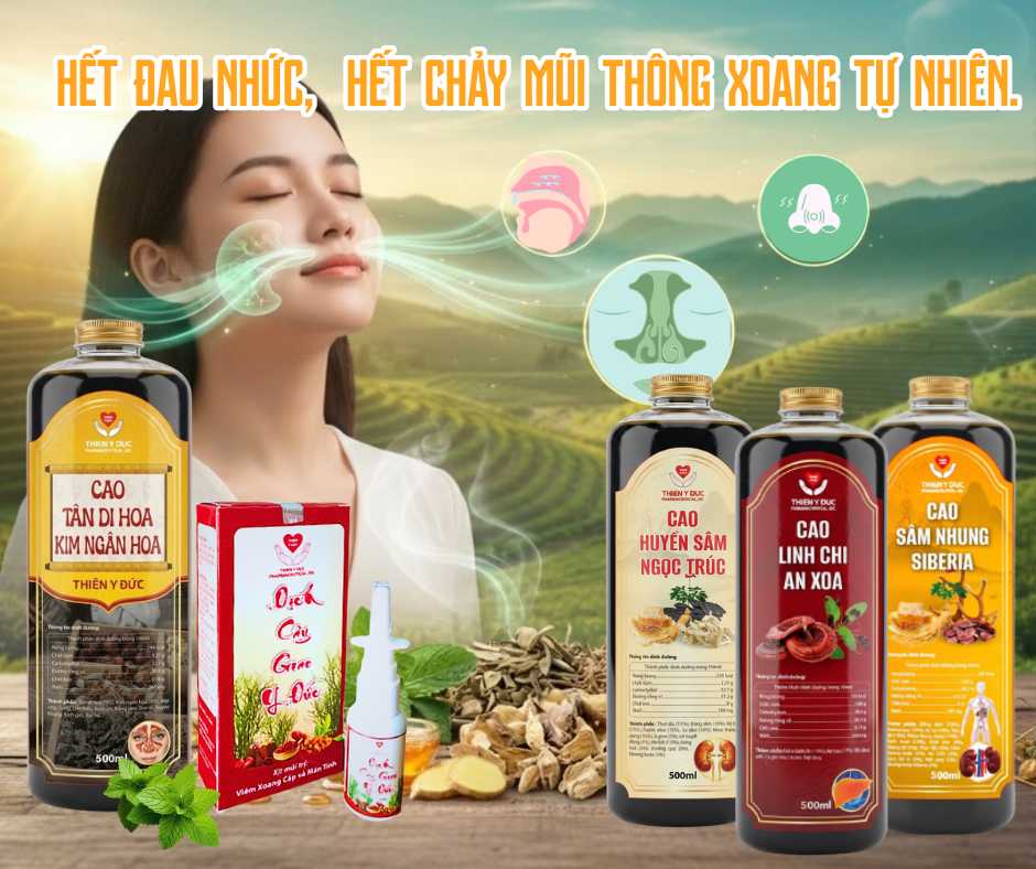 Cao Tân Di Hoa – Kim Ngân Hoa Thiên Y Đức phối hợp thảo dược giúp hỗ trợ thông xoang – tán phong – thanh nhiệt nhẹ – điều hòa khí huyết.