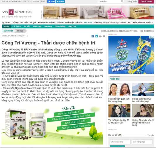 BÁO CHÍ NÓI VỀ CÔNG DỤNG CỦA THUỐC CÔNG TRĨ VƯƠNG - THẦN DƯỢC TRỊ BỆNH TRĨ