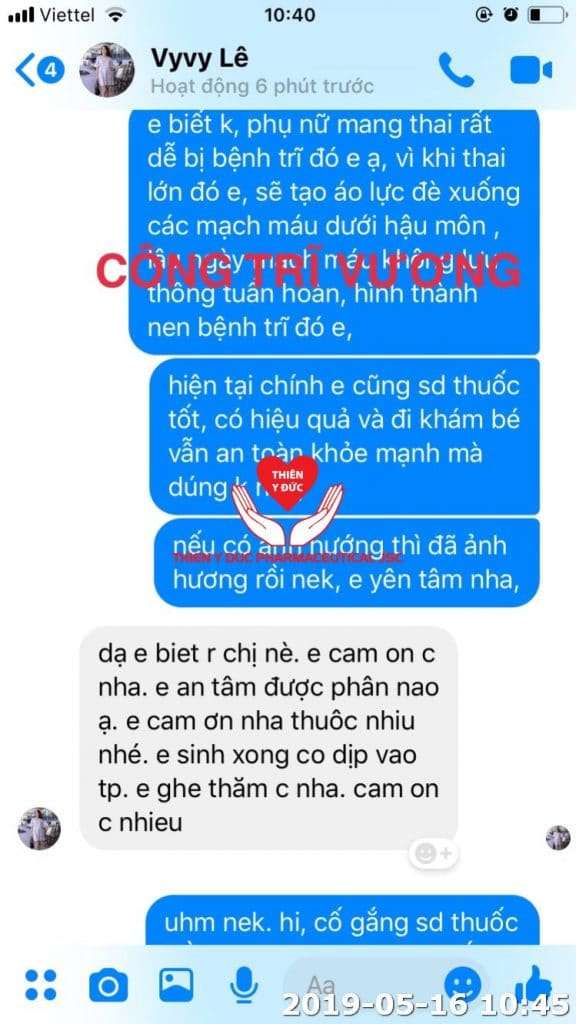 Vô tình lướt trên facebook em thấy nhà thuốc CÔNG TRĨ VƯƠNG, em điều trị thử 1 liệu trình thảo dược – an toàn cho thai nhi. Chưa hết 1 liệu trình, giờ đây em không còn đau rát, khó chịu, búi trĩ đã tiêu biến hoàn toàn.